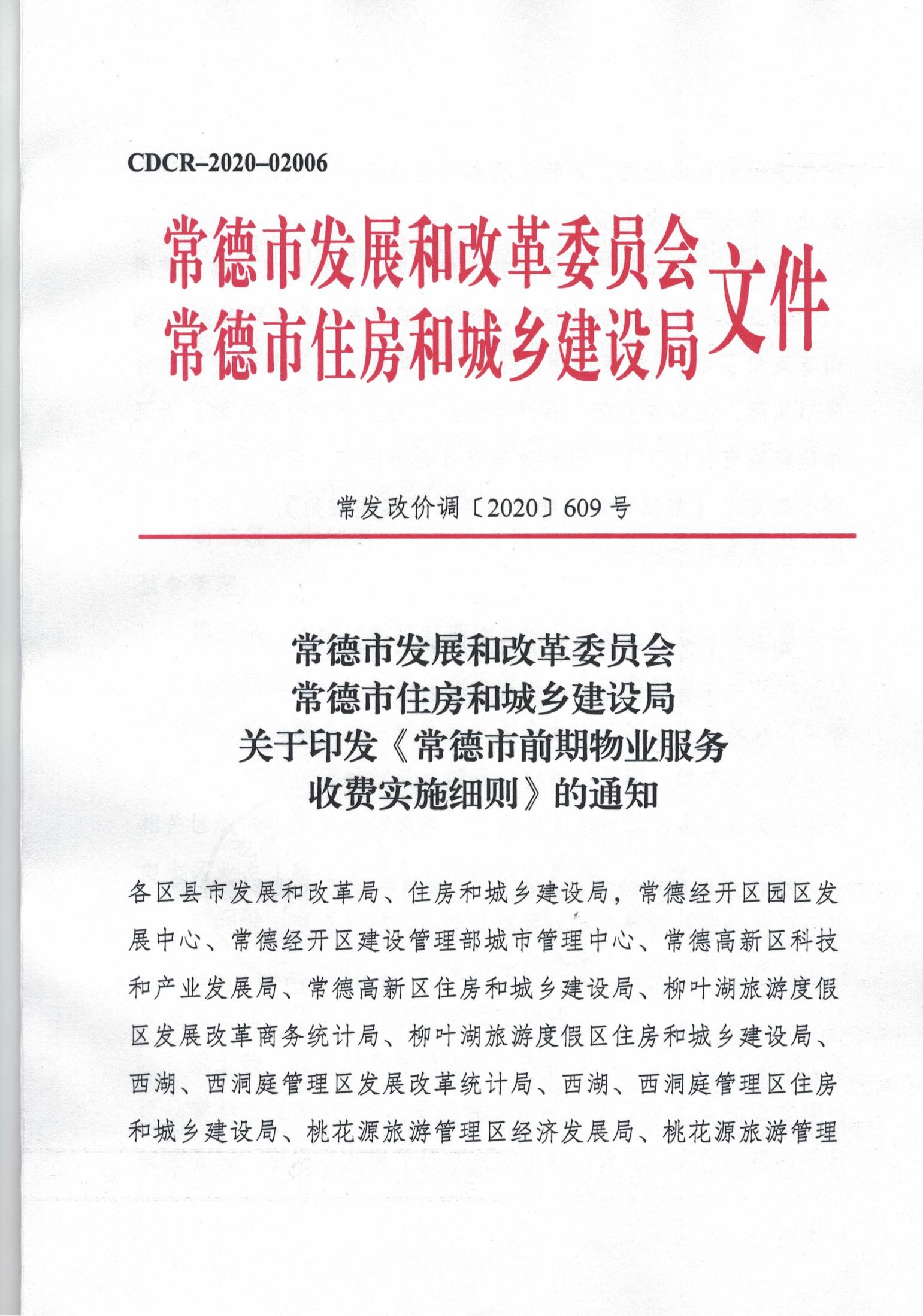 常德市發(fā)展和改革委員會(huì) 常德市住房和城鄉(xiāng)建設(shè)局 關(guān)于印發(fā)《常德市前期物業(yè)服務(wù) 收費(fèi)實(shí)施細(xì)則》的通知